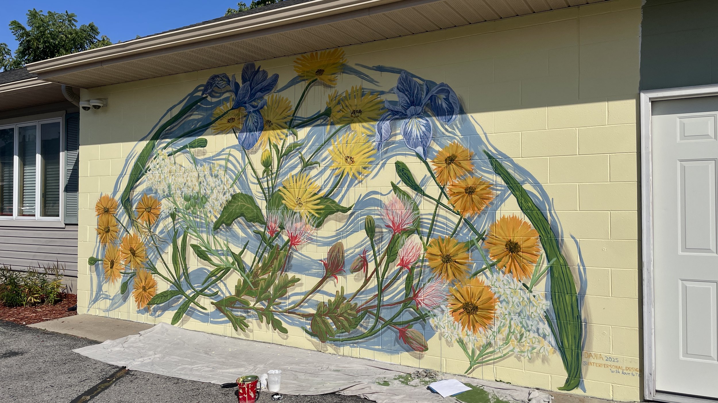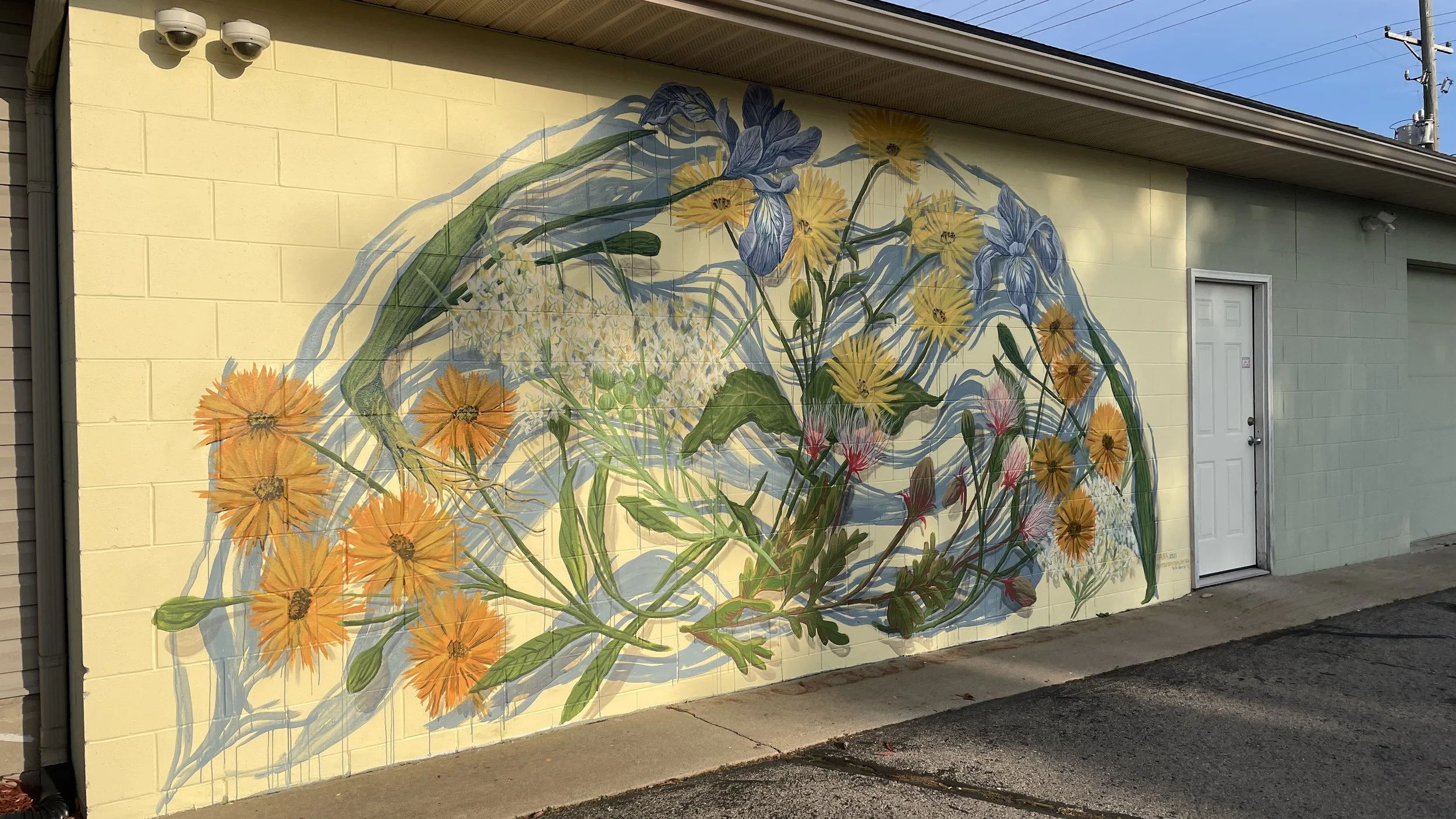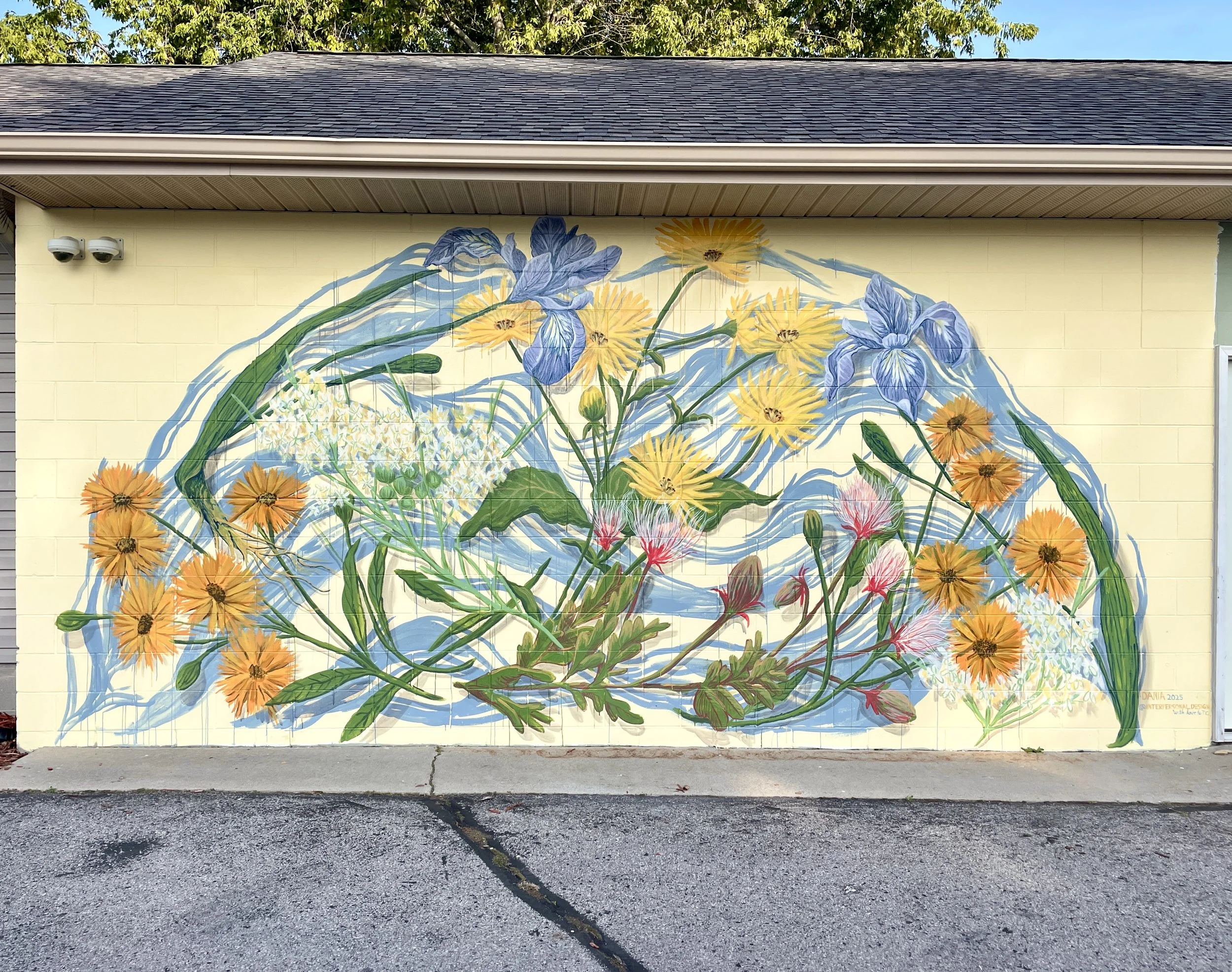 The first of my Traverse City murals! I call them the sisters, two designs of native plants on opposite walls that reflect and mimic one another. Freehand as always, the paint drips are a part of experience. It shows that a real live human made this!