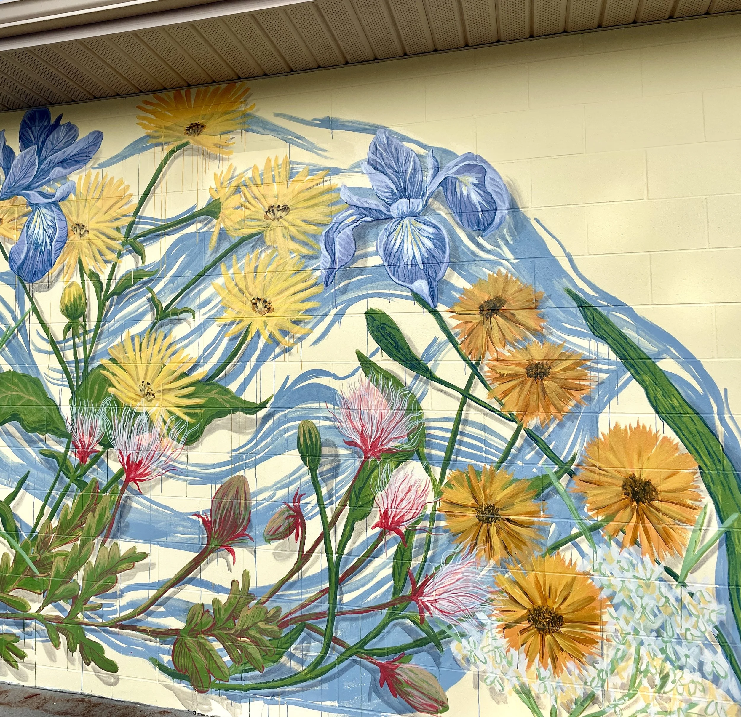 After researching plants that grow along the TART trail network, I spoke with local experts to get their insights on what plants to include in the murals (big ups to Sarah, who even though she was super sick with the flu called me back on her personal phone from home to talk plants.) I chose a fantastical arrangement, they don’t all bloom at the same time in reality, but in murals they do.